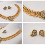 The matching earrings mirror the same intricate design, making this set perfect for festive occasions, weddings, poojas, and ethnic celebrations.